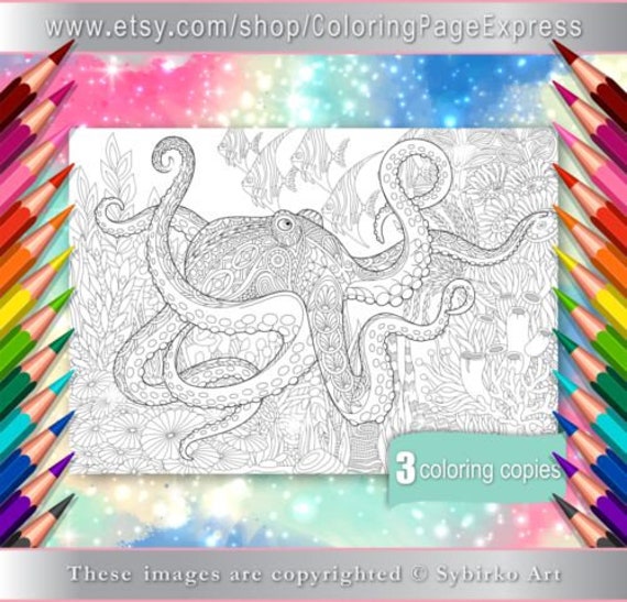 Coloring Pages For Adults Digital Coloring Pages Sea Ocean Etsy