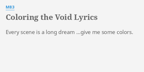 Coloring the void m83 lyrics. M83 coloring the void lyrics. Every scene is a long dream give me some colors every scene is a long dream give me some colors every scene is a long dream give me some. Its super easy we promise. Watch the video for coloring the void from m83s digital shades vol.