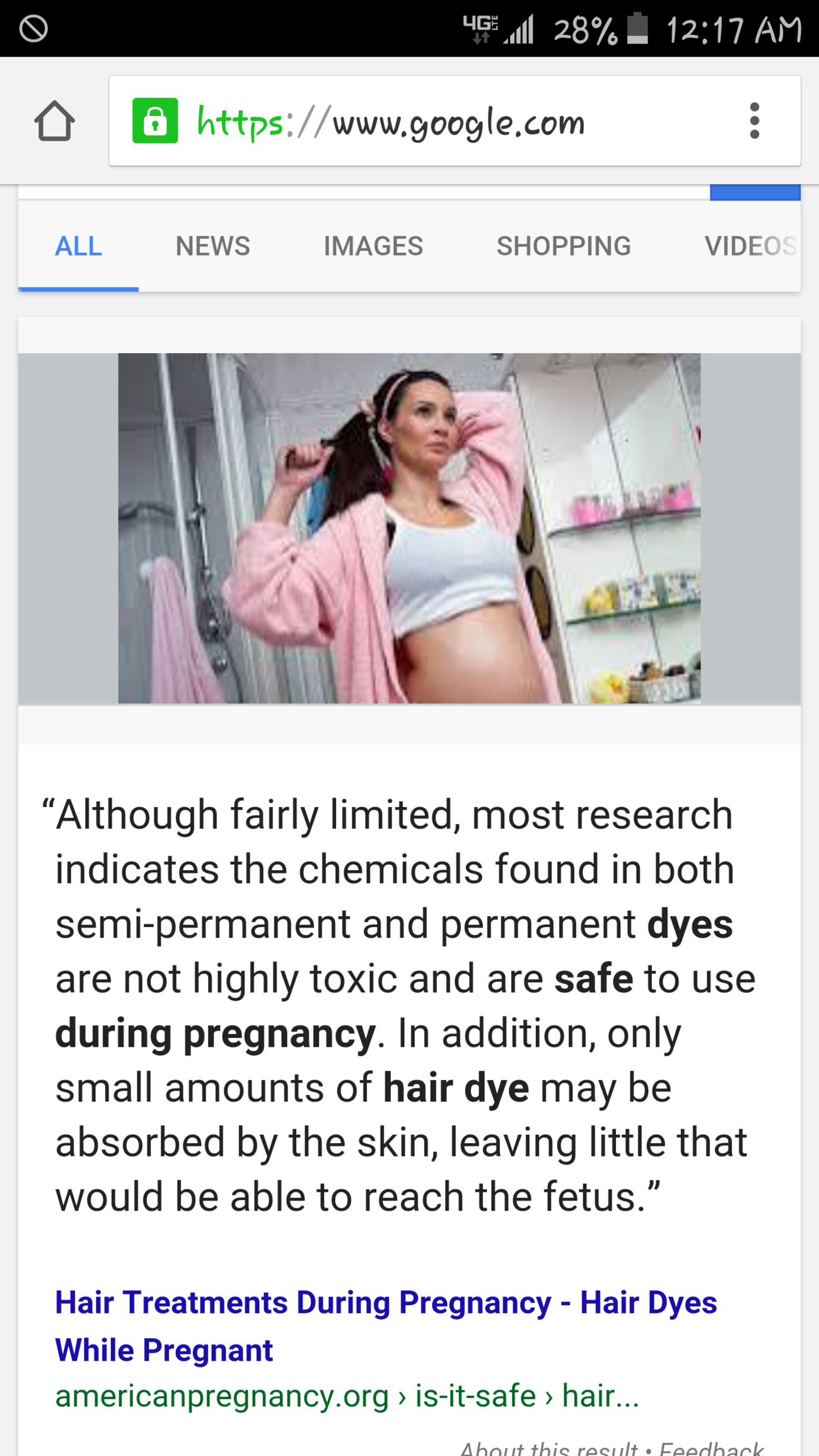 Coloring your hair while pregnant okay. Continued safety of lead acetates in hair dyes. Instead of coloring your hair completely during pregnancy opt for highlights. The good news is that hair dyes arent dangerously toxic so its safe to apply color to your hair while pregnant. Studies looking at pregnant animals exposed to hair dye show no cause for alarm.