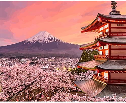 Colour By Numbers For Adults Children Digital By Painting Diy On Canvas Art Paint By Numbers Fuji Cherry Blossoms In Spring Canvas Acrylic Room Decor 16x20 Inch Without Frame Amazon Co Uk Kitchen