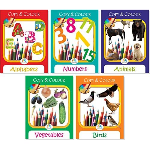 Colouring Book For Kids Combo 5 Books Alphabet Numbers Animals Vegetables And Birds By Classmate Publication