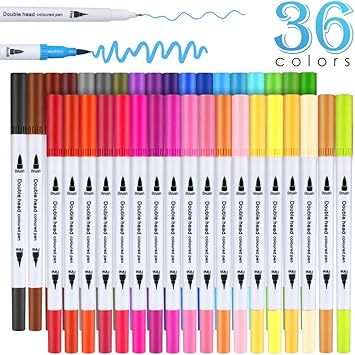 36 Colour Felt Tip Pens Watercolour Marker Pens Boiros Double Art Colouring Pens Fine Tip Brush Markers For Adult Students Diy Card Making Photo Album Coloring Books Craft Doodling Amazon Co Uk Office Products