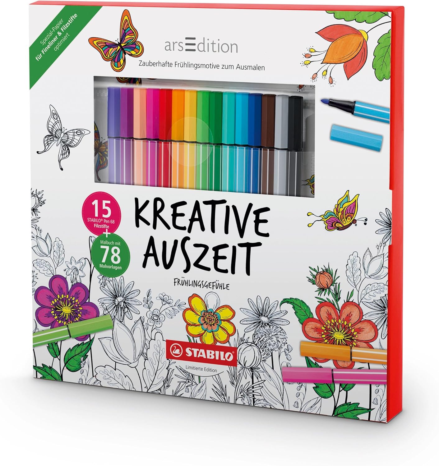 Stabilo Adult Creative Colouring Set Which Includes A 78 Page Adult Colouring Book And 15 Pen 68 Felt Tip Pens Amazon Co Uk Office Products