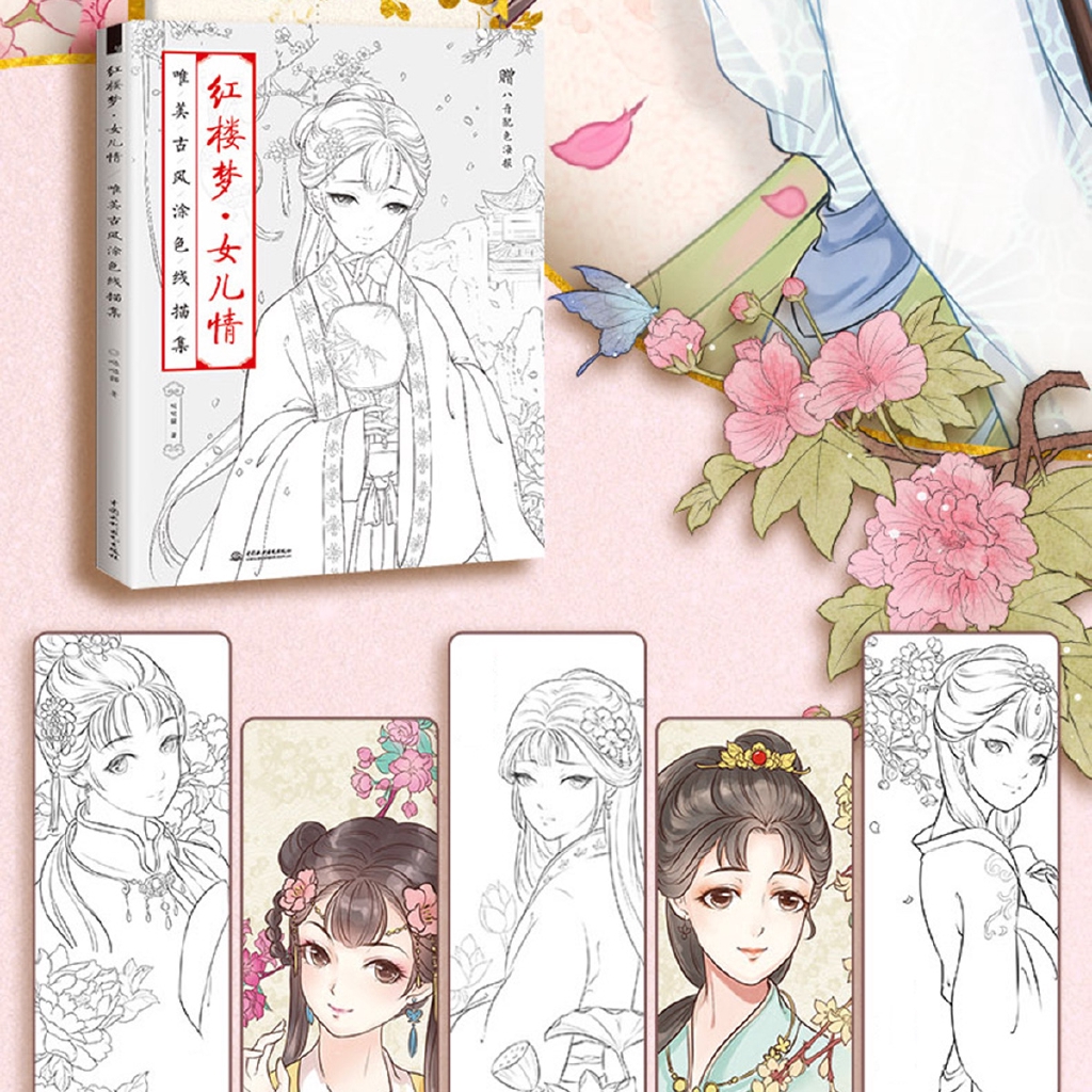 Painting Adults Honglou Coloring Books Classic Oriental Women Pencil Sketch Shopee Indonesia